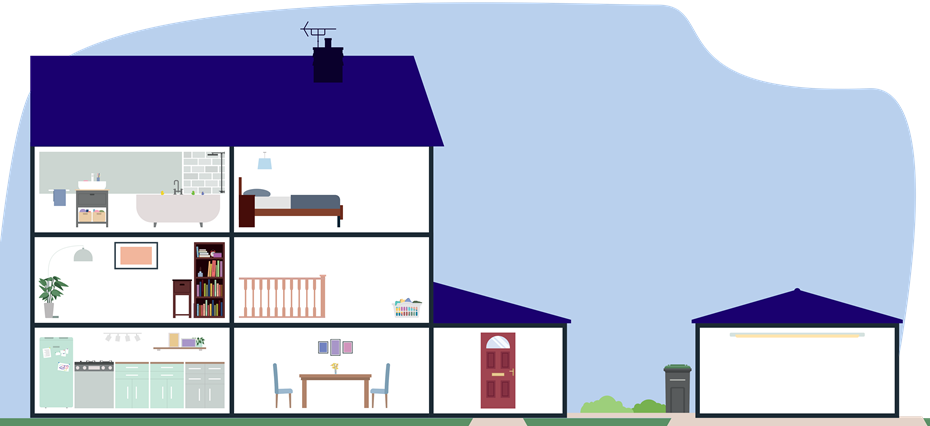 - Click on a room in the image of the house below - this will guide you to the area that you, or the person you care for, need help with;